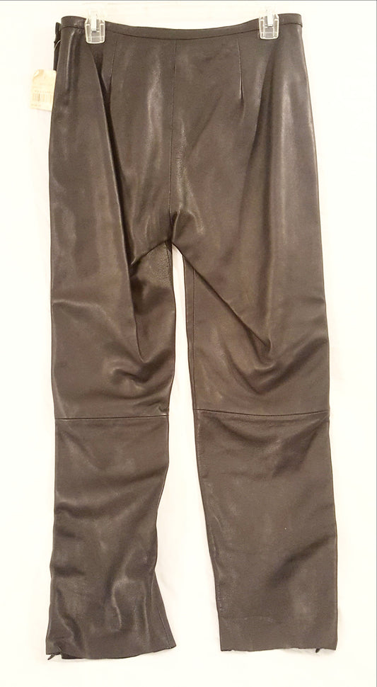 Black Cropped Leather Pants-New